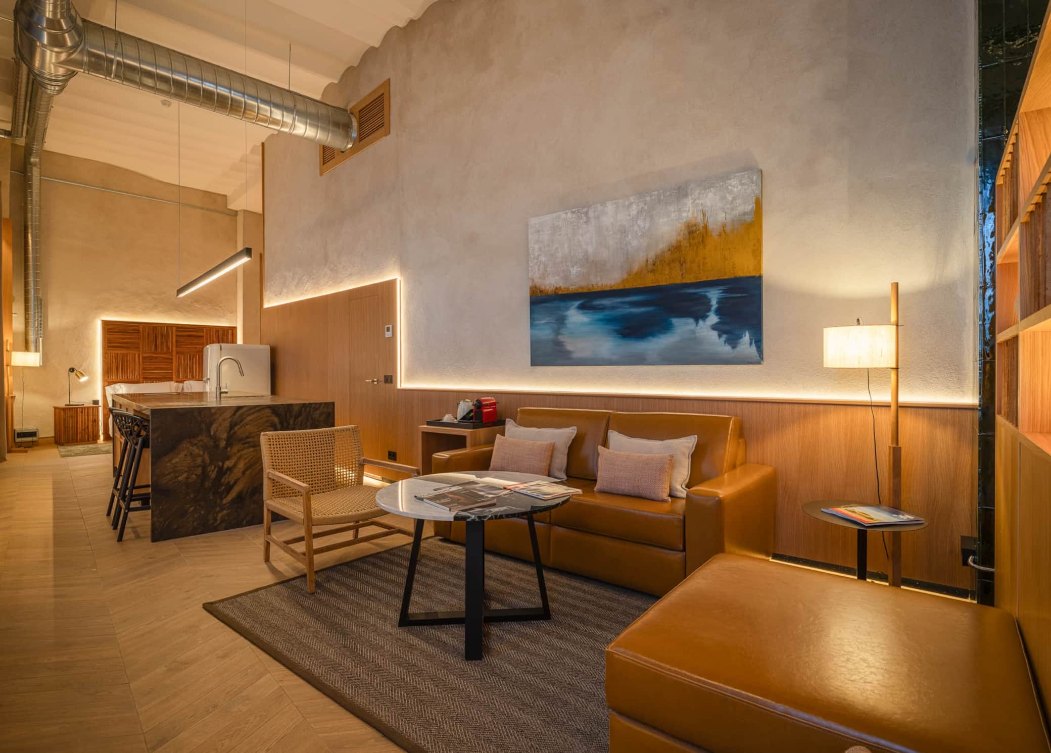 Este espacio luminoso cuenta con un salón acogedor, que integra un sofá cama convertible en cama de 160cm y una televisión Smart TV de 55” con Netflix. Un elegante dormitorio con una cama King Size de 181cm, dos baños perfectamente equipados con toallas, artículos de aseo gratuitos, secador de pelo, zapatillas, esterillas y todo lo necesario para un agradable baño. También cuenta con una cocina de isla de granito importado totalmente equipada con vajilla, sartenes, cafetera Nespresso, hervidora, lavadora, lavavajillas y todos los utensilios de cocina necesarios.